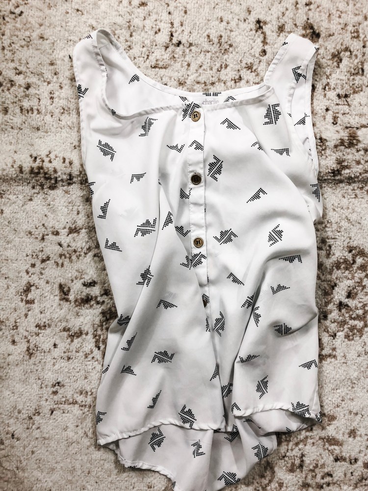 My second piece is a tank I bought randomly over three years ago at Charming Charlie. I have not had the courage to get rid of it because part of me always has liked it but not enough to wear it out.